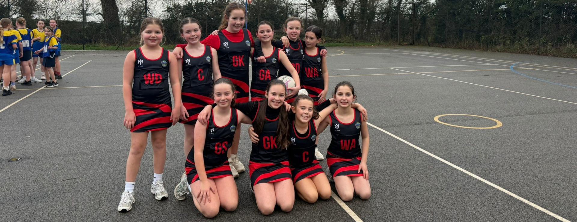 Gracie-May, the team Captain, was making life difficult for all opposition shooters in the circle, and was well supported by April. Our defensive players - Isla, Evelyn and Millie - read the ball well with some fantastic interceptions across the court. Lily C did a great job as Centre, keeping up with play with some great attacking moves into Alba, Lilly F and Flo. Lilly F and Alba were making space and Flo covered so much of the court. There was great movement in the circle by Saoirse, which meant the shots kept coming with some great goals scored by Flo and Saoirse.