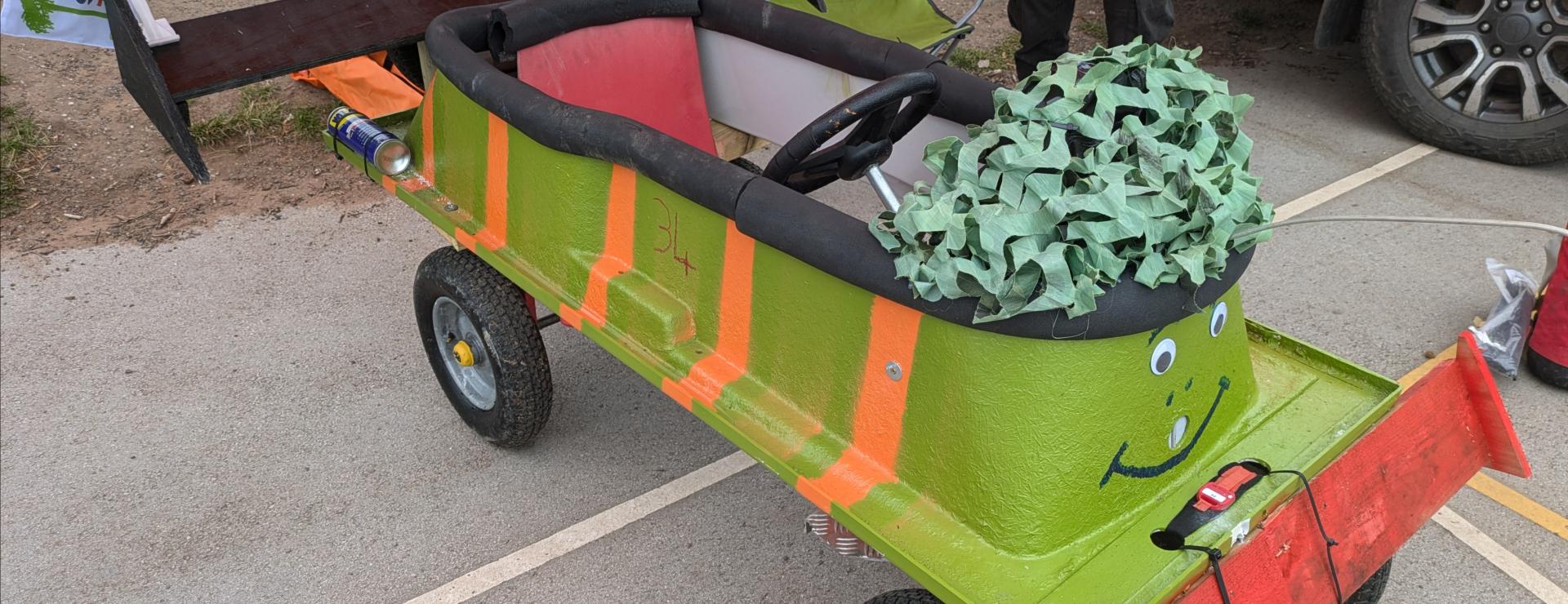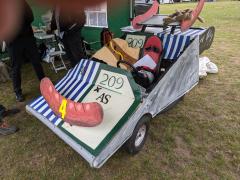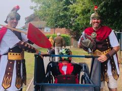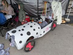School had their team again which consisted of Mr Bond, Mr McCann and Mr Walker, all dressed as Roman Gladiators. Their kart was an impressive Roman chariot. This year, we had the Mario Brothers, Jurassic Park and even Cruella de Vil with her many dalmations. There was also the weird and the wonderful with a pizza slice, Lightening McQueen and one with a football goal on the back!