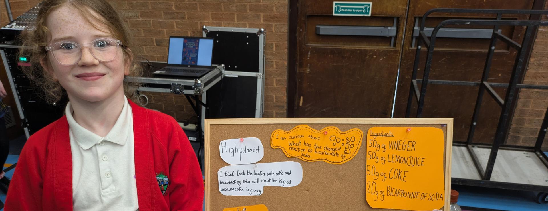 Finally, in Year 4, Freya had a wonderful experiement where she was trying to find the strongest acids and bases that you can find in and around your kitchen. She had conical flasks, ph test indicators and had some of them over flowing due to their violent chemical reaction.